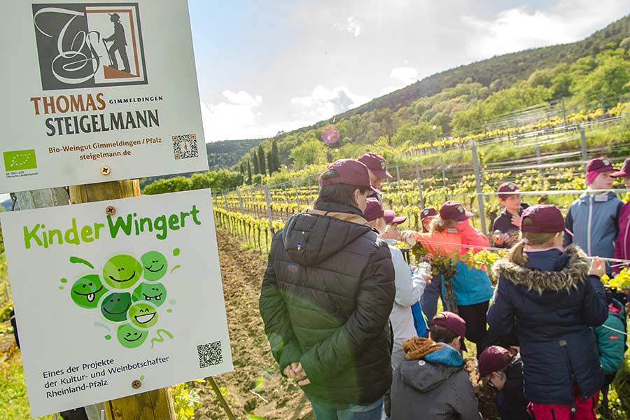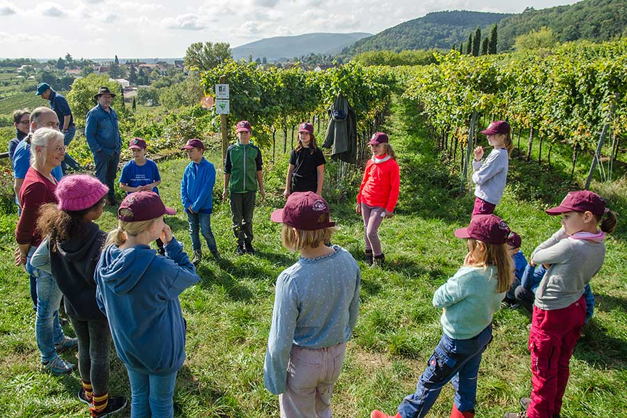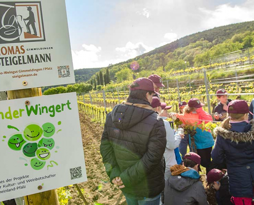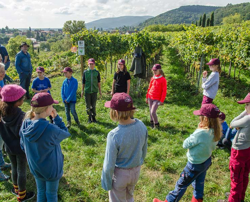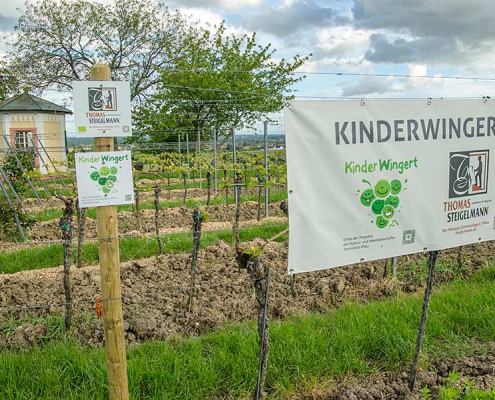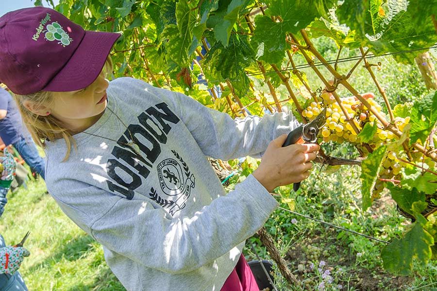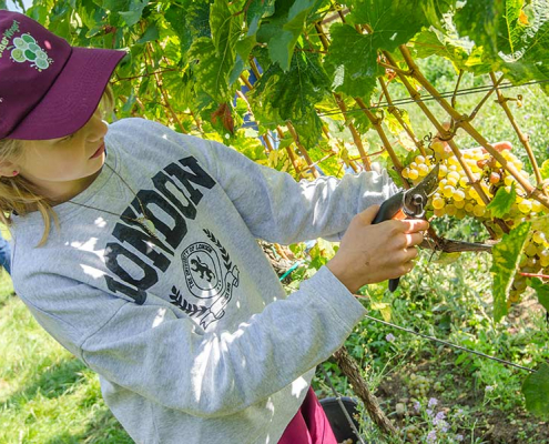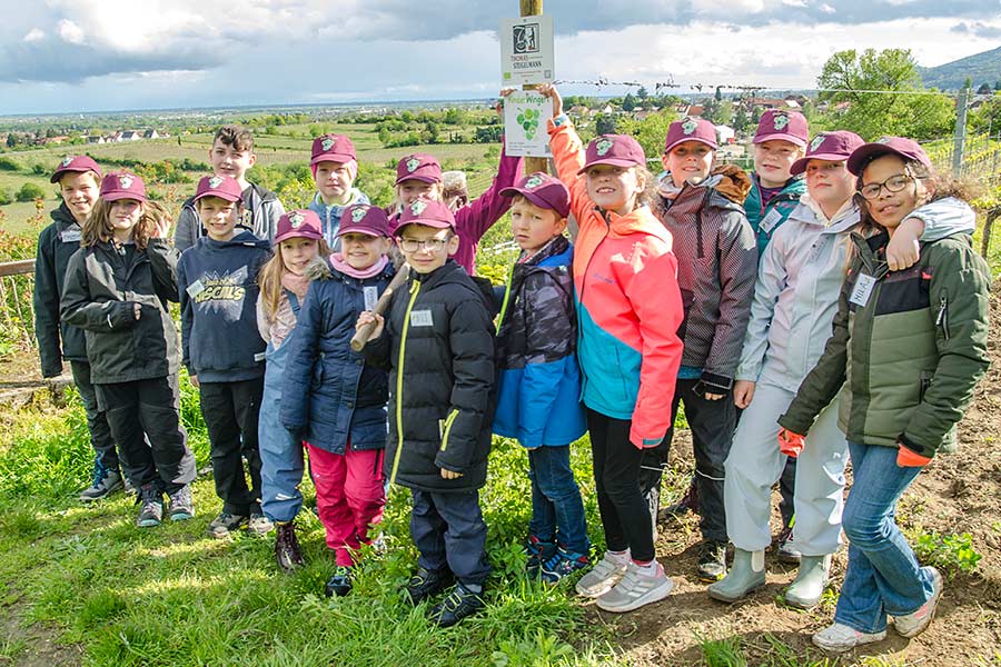 Jedes Kind erhält Reben in unserem Kinderwingert und übernimmt die Patenschaft dafür. Rund ums Jahr werden wir mit den Kindern erleben, wie die Reben wachsen und führen hierzu Aktionen im Weinberg durch. Die Kinder können so Schritt für Schritt nachvollziehen, was sich im Wein-berg tut und wie es wirklich vom Pflanzen der Reben über Schneiden, Bodenbearbeitung, Entlauben, Entblättern und vielem mehr dazu kommt, dass die Trauben wachsen, sich entwickeln, gelesen und zu Traubensaft gepresst werden können.